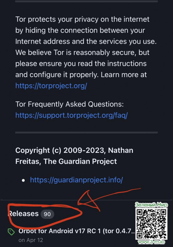 Далее нам понадобится приложение Orbot, скачиваем из раздела "Releases" из официального реппозитория: https://github.com/guardianproject/orbot), самую последнюю версию.