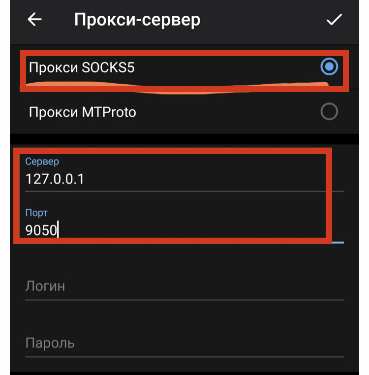 Тип прокси - Прокси SOCKS5 (просто выбираем)